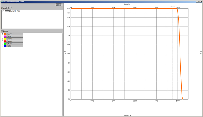This is an example of a DVH where 100% of the volume will receive at least 95% of the dose.