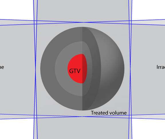 GTV (Gross Tumor Volume) – The GTV is “the gross demonstrable extent and location of malignant growth.” As such, the GTV may contain some nearby areas of lymphadenopathy and metastasis.