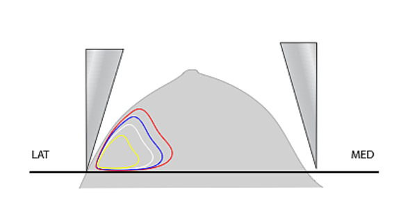 This image represents what a breast cancer treatment plan might look like if it was weighted to heavily to the lateral side.